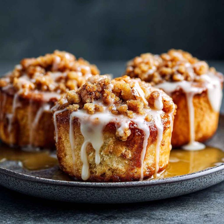 The finishing touches elevate these buns further. A buttery crumble topping adds a satisfying crunch, contrasting beautifully with the soft interior. A simple glaze drizzled on top provides a silky sweetness and enhances the visual appeal. This combination of soft, creamy, tender, and crunchy makes these buns irresistible and memorable, suitable for serving as a brunch centerpiece, a dessert treat, or a cozy snack during cooler months.