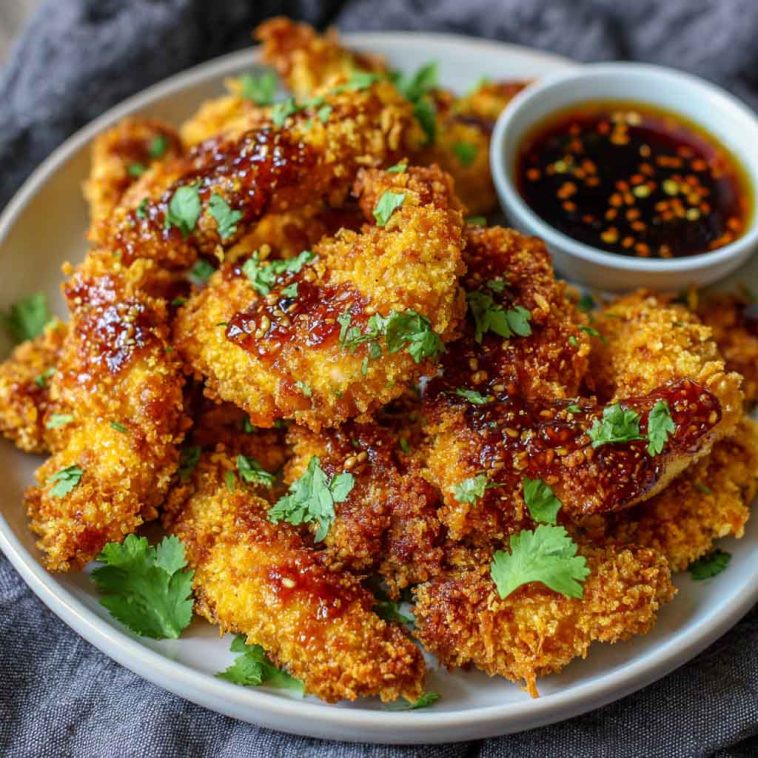 To achieve the perfect golden crust without frying, lightly spray or drizzle the chicken with oil before baking. This helps the coating caramelize and crisp, delivering that satisfying crunch and sticky, spicy-sweet honey glaze that makes this dish unforgettable.