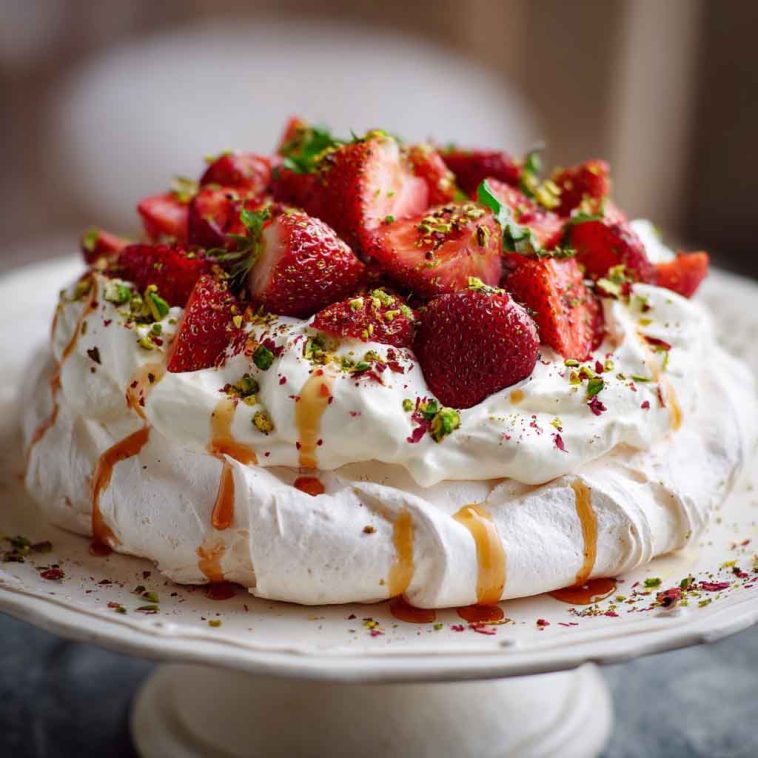 Chocolate Pavlova: Add 1–2 tablespoons of unsweetened cocoa powder to your meringue mixture before baking. This gives the pavlova a subtle chocolate flavor and a beautiful mocha color. Top it with whipped cream and chocolate shavings or fresh raspberries for an indulgent twist.