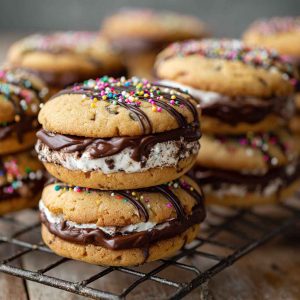 A: Yes! Freeze dough balls or baked cookies separately. Assemble after thawing for best texture, or freeze fully assembled cookies and thaw in the fridge before serving.