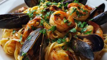 Seafood Pasta with Linguine, Shrimp, and Mussels