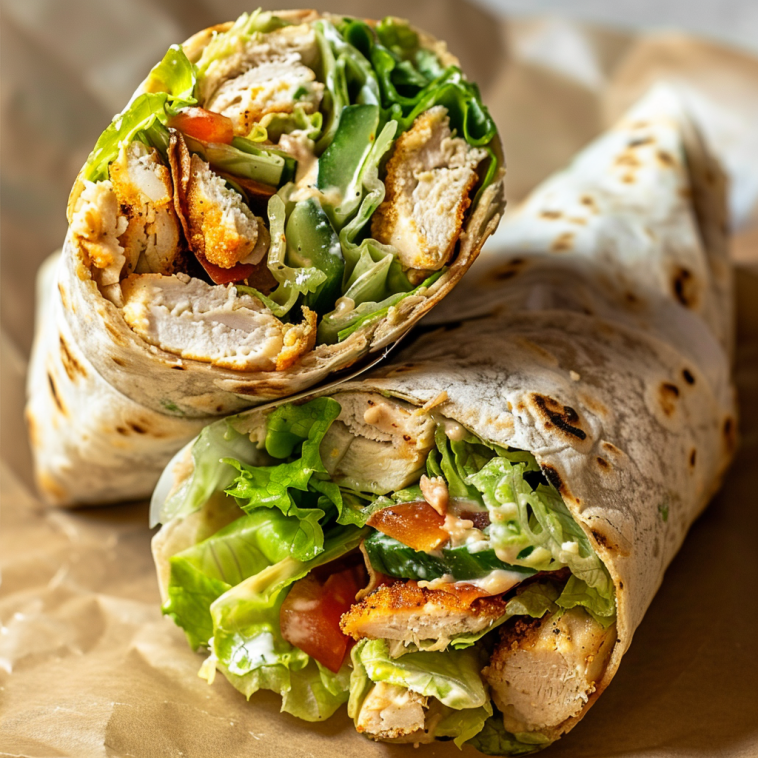 A Chicken Caesar Wrap combines the classic flavors of a Caesar salad with the convenience of a handheld wrap. It’s a satisfying and flavorful meal that’s perfect for lunch or a light dinner. This recipe features tender grilled chicken, crisp romaine lettuce, juicy cherry tomatoes, and savory Parmesan cheese, all drizzled with creamy Caesar dressing and wrapped in a soft tortilla. It’s easy to customize with your favorite additions and makes for a deliciously portable meal on the go or at home.