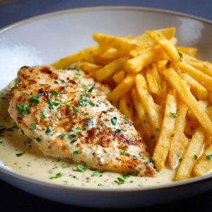 Chicken Fillet in Spicy, Creamy Garlic-Parmesan Sauce with Fries