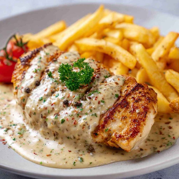 Chicken Fillet in Spicy Garlic-Parmesan Sauce Recipe | Creamy Chicken with Fries & Bold Flavor