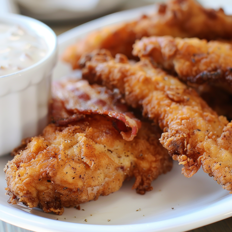 Chicken Fried Bacon is a dish where strips of bacon are breaded and fried, similar to chicken fried steak or chicken fried chicken. It’s a popular dish in some Southern cuisine and is known for its indulgent and savory flavor. It’s definitely not the healthiest option, but it’s enjoyed for its crispy texture and rich taste.