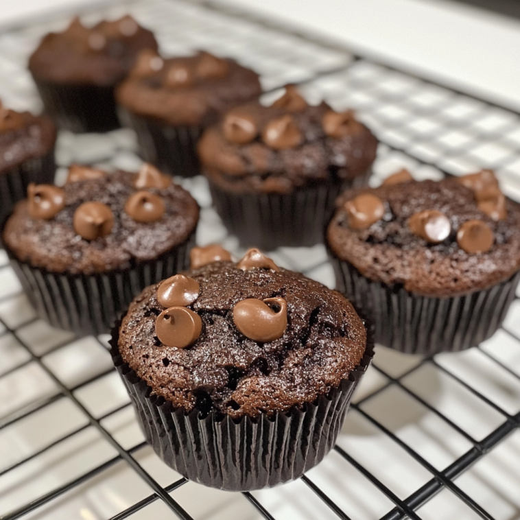 Enjoy your homemade chocolate muffins, perfect for a sweet breakfast or snack!
