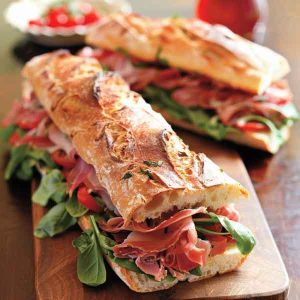 Bread: Hoagie rolls, ciabatta, or baguette are ideal. Choose crusty bread to hold up against the moisture and keep the sandwich from getting soggy.