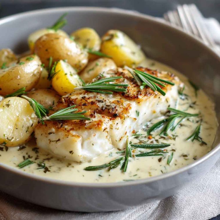 Cod & Potatoes in Rosemary Cream Sauce – Creamy, Flavorful & Elegant