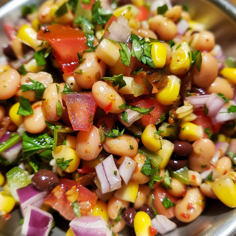 Cowboy Caviar, also known as Texas Caviar, is a popular American dish made with a variety of fresh vegetables and legumes, typically dressed in a tangy vinaigrette. It’s a colorful and flavorful mix that’s often served as a dip with tortilla chips, but it can also be enjoyed as a side salad or a topping for grilled meats and fish.