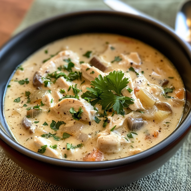 Enjoy your Creamy Chicken Soup with Caramelized Onions—it’s a delightful blend of flavors that will warm you up and satisfy your cravings!