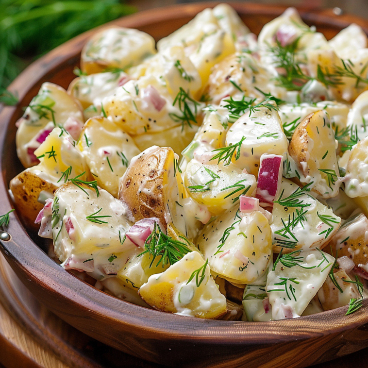 Serve the Creamy Dill German Potato Salad chilled or at room temperature as a delicious side dish alongside grilled meats, sandwiches, or as part of a buffet spread.