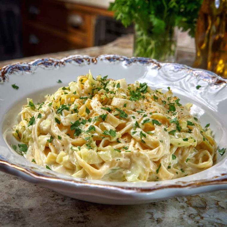 Creamy Garlic Alfredo with Tender Cabbage – Easy Comfort Food Pasta Recipe