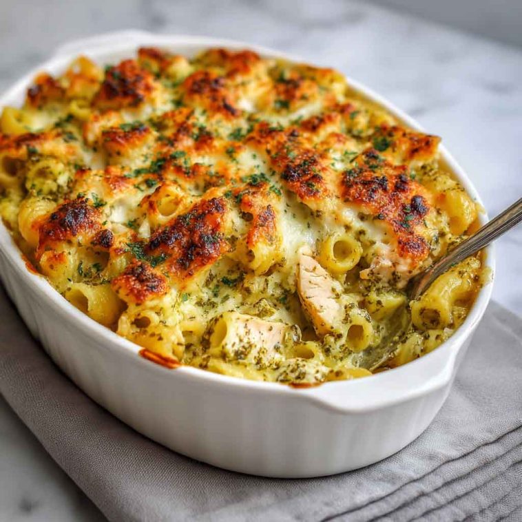 Creamy Pesto Chicken Pasta Bake is a comforting, flavorful one-dish meal featuring tender chicken, al dente pasta, and vibrant pesto in a luscious creamy cheese sauce. Baked until bubbly and golden, it’s perfect for busy weeknights, family dinners, or casual gatherings. Easily customizable with veggies, cheese, or protein swaps, this pasta bake is a crowd-pleaser that balances fresh herbal notes with rich, cheesy goodness.