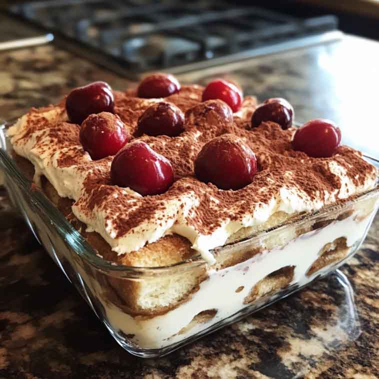 This isn’t your nonna’s tiramisu—but she’d approve. With layers of pillowy cream, sweet-tart cherries, and a soft almond finish, every bite is pure indulgence. Whether you’re celebrating a holiday, hosting a romantic dinner, or just craving a special dessert, this recipe will steal the spotlight.