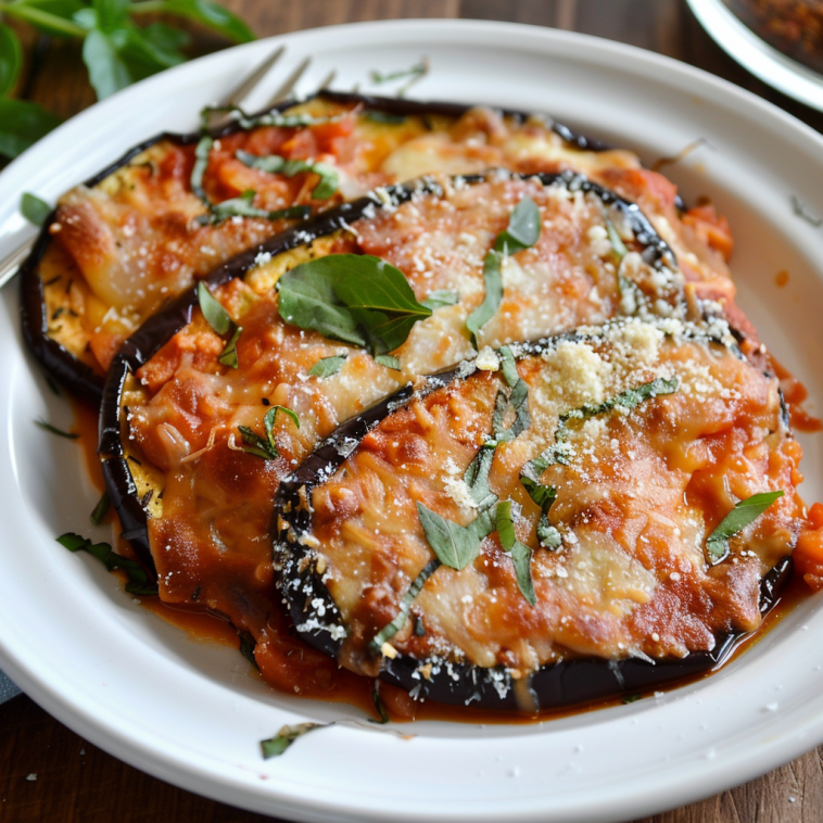 Let the Eggplant Parmesan rest for a few minutes before serving.