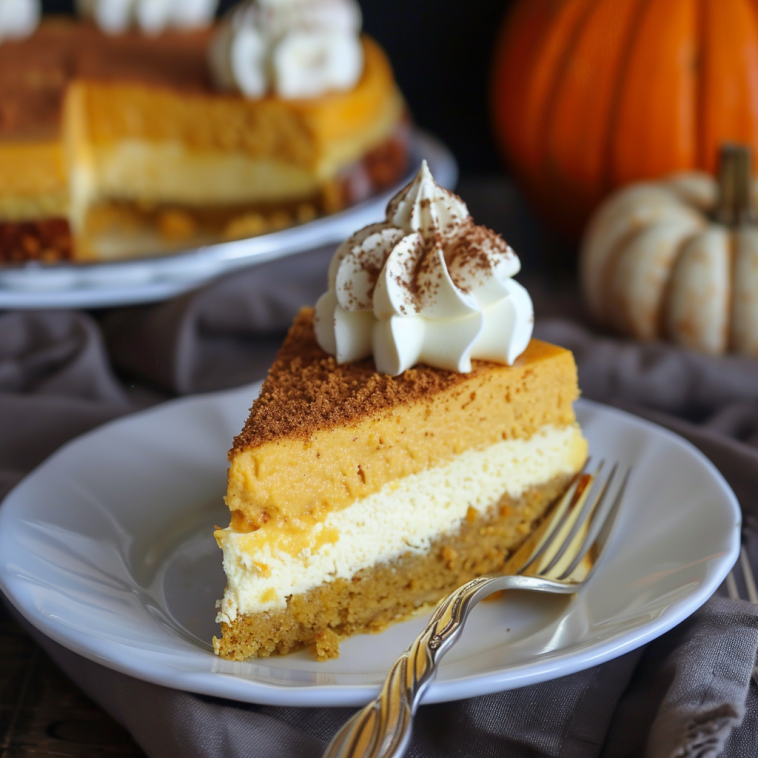 Double Layer Pumpkin Cheesecake is a delicious dessert that combines the creamy texture of cheesecake with the warm, spiced flavors of pumpkin pie. It typically consists of two layers: a traditional cheesecake layer and a pumpkin-flavored cheesecake layer, all set on a graham cracker crust. Here’s a basic recipe for making it: