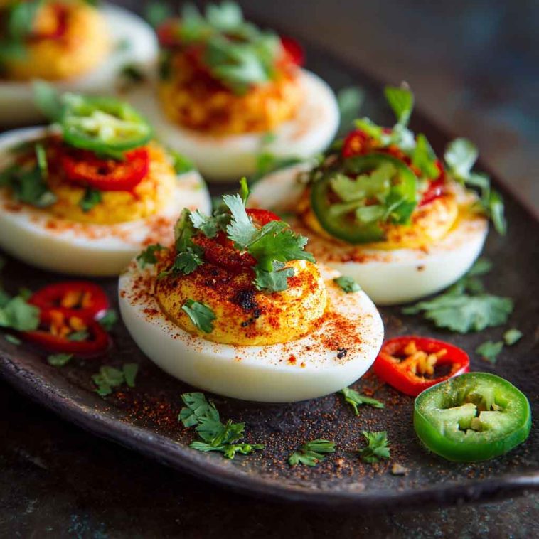 Spice levels are flexible. A touch of chili flakes creates a mild warmth, while chili garlic paste or extra red pepper can make the filling medium or fiery. This flexibility allows you to tailor the eggs to your audience—perfect for picky eaters or heat lovers alike. The result is a deviled egg that is as visually appealing as it is delicious, with every bite delivering a creamy, savory, slightly spicy experience.