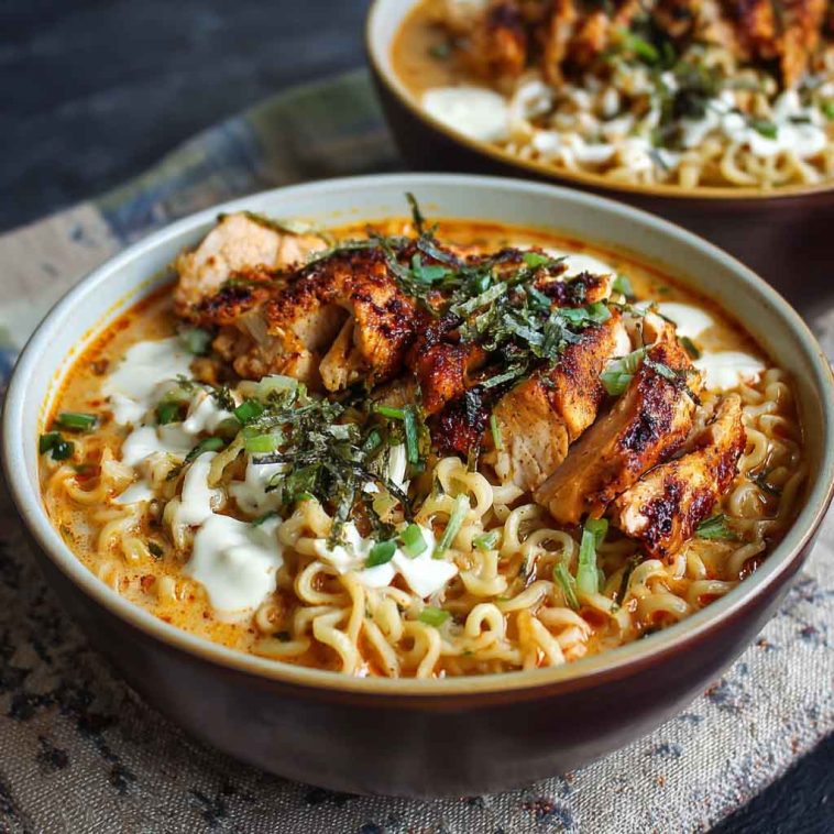 Fiery Chicken Ramen with Creamy Garlic Sauce – Spicy, Savory & Ultra Comforting