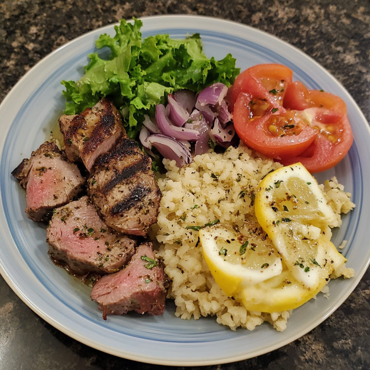 A Greek Lamb and Salad Dinner is a delicious, Mediterranean-inspired meal featuring tender, flavorful lamb served with a refreshing and vibrant Greek salad. The lamb is typically marinated with classic Greek flavors like garlic, lemon, olive oil, and oregano, then grilled or roasted to perfection. It’s paired with a crisp, colorful Greek salad loaded with fresh vegetables, olives, and feta cheese.