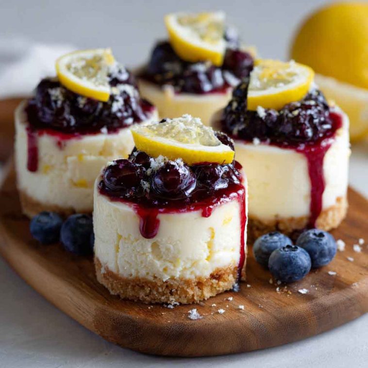 Juicy Mini Lemon Blueberry Cheesecakes – Tangy, Sweet & Perfectly Bite-Sized