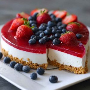 This No-Bake Greek Yogurt Jello Cheesecake is a light, colorful, and versatile dessert perfect for any occasion. Its creamy texture, fruity flavors, and quick prep make it a crowd-pleaser without the need for an oven. Experiment with flavors, layers, and toppings to suit your taste.