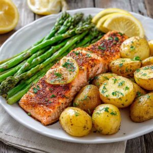 One-Pan Baked Salmon with Potatoes & Asparagus – Easy, Healthy & Delicious!