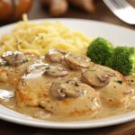 - Remove the skillet from heat, garnish with freshly chopped parsley, and serve the Cajun chicken and creamy orzo hot.