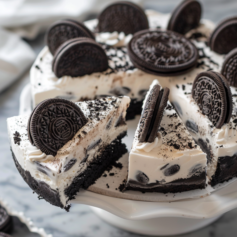 Oreo Ice Cream Cake is a decadent dessert that combines the irresistible flavors of Oreo cookies, creamy vanilla ice cream, and rich chocolate fudge sauce. It’s a perfect treat for any occasion, from birthday parties to summer gatherings. With its crunchy Oreo cookie crust and layers of velvety ice cream and fudge, this dessert is sure to impress both kids and adults alike. Whether you’re looking for a crowd-pleasing dessert or simply craving a delightful indulgence, Oreo Ice Cream Cake promises to satisfy your sweet tooth with every delicious bite.