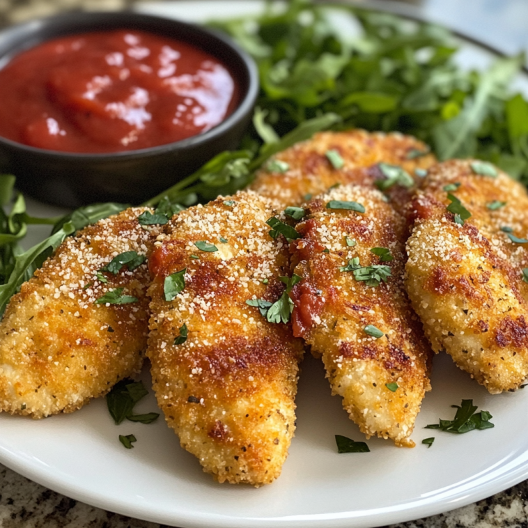 These Oven-Baked Crispy Parmesan Chicken Tenders are golden, crunchy on the outside, and juicy on the inside — with no frying needed! Coated in a flavorful Parmesan and breadcrumb crust, they’re baked to perfection and make the ultimate dippable dinner or snack.