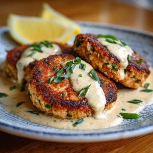 Salmon Patties with Creamy Lemon Garlic Sauce – Crispy, Tangy & Ready in Minutes!