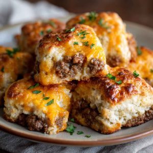 Butter swim biscuits are the kind of Southern comfort that wraps you in warmth from the first bite. Originating from kitchens where simplicity meets indulgence, these biscuits are baked in a pool of melted butter, creating a golden crust and tender, buttery interior. But this version takes things up a notch—with savory sausage and sharp cheddar cheese folded right into the dough. It’s the ultimate breakfast trifecta: rich butter, hearty sausage, and melty cheese. No fancy techniques, just crave-worthy flavor in every square. Whether you’re feeding a crowd or treating yourself to a slow morning, this recipe transforms breakfast into a soul-satisfying experience. One pan, one bake, endless comfort.