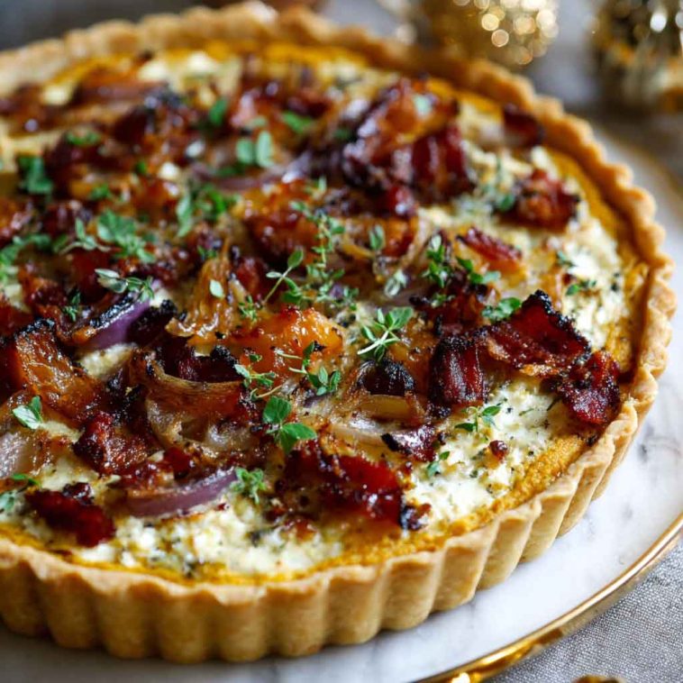 Savory Pumpkin Ricotta Tart with Bacon & Caramelized Onions – Rich, Golden & Fall-Perfect