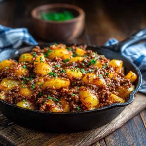 Sloppy Joe Potato Skillet is everything a weeknight dinner should be—flavorful, fast, and family-approved. With crispy potatoes, saucy meat, and melty cheese, it’s comfort food at its best.