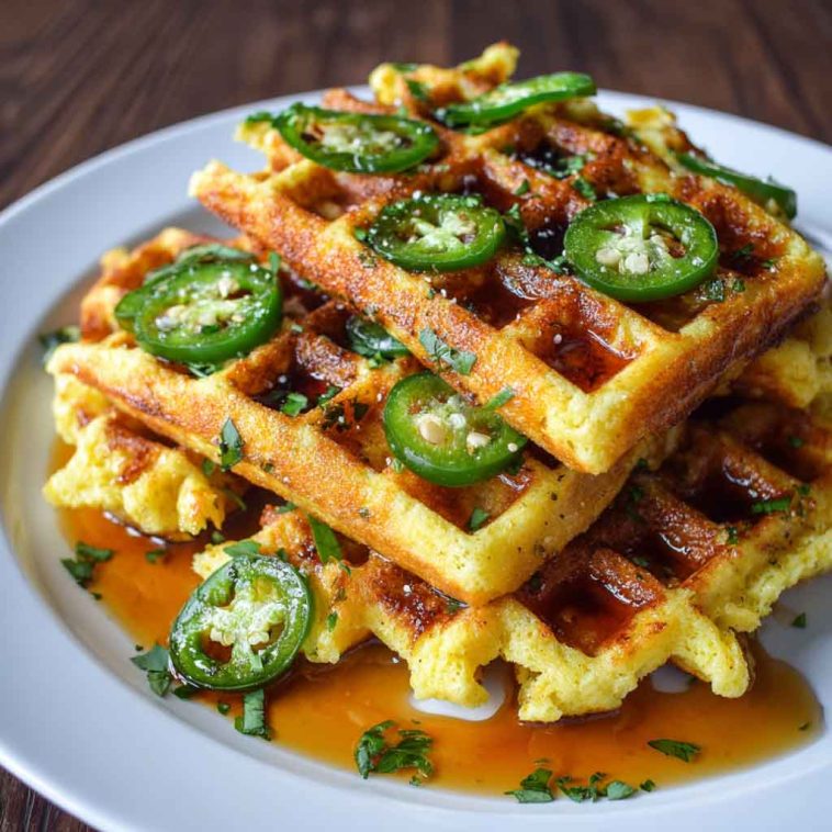 Spicy Cheddar Jalapeño Cornbread Waffles – Bold, Crispy & Irresistible!