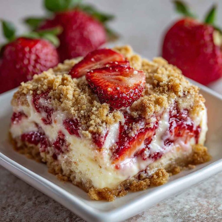 Adding fresh sliced strawberries on top before baking adds freshness and visual appeal. Nuts such as sliced almonds or chopped pecans sprinkled over the cake mix give a lovely crunch contrast. Vanilla extract or a dash of cinnamon in the cream cheese mix adds warmth and depth.