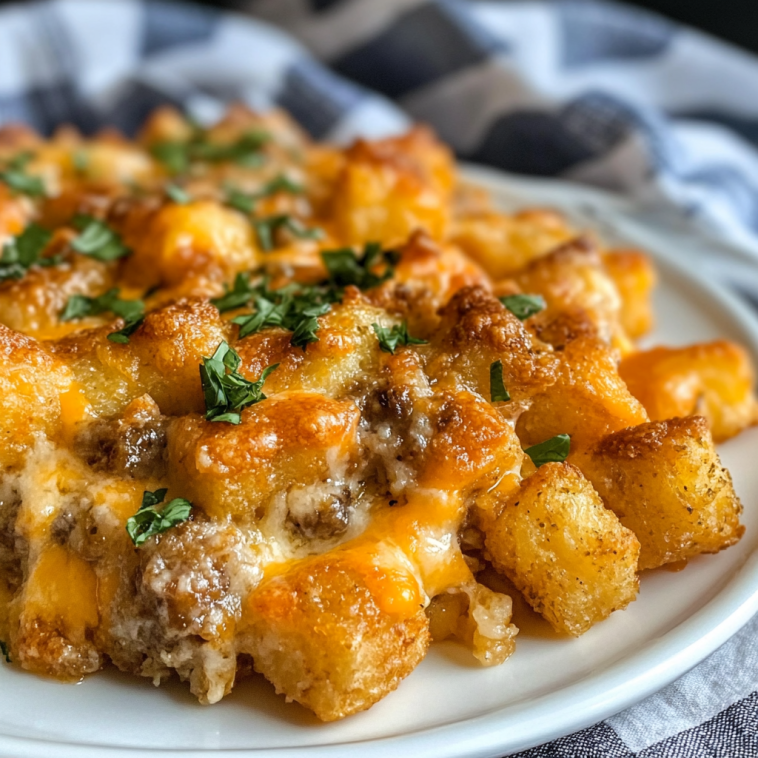 Tater Tot Casserole is a comforting and hearty dish made with ground meat, vegetables, and topped with crispy tater tots. It’s a crowd-pleaser that’s easy to prepare and perfect for family dinners. Here’s a simple recipe to make it!