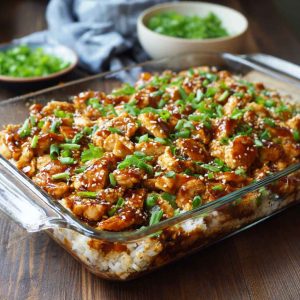 A cozy, flavor-packed casserole that blends juicy chicken, tender rice, colorful vegetables, and a sweet-savory teriyaki sauce—topped with melty cheese. Perfect for family dinners, meal prep, or potlucks. Easy to customize and freezer-friendly.
